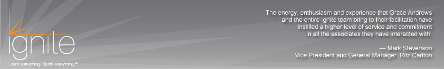 This initiative involves the team in safe removal of toxic waste. IGNITE style, that is. The team is divided into leaders and workers and there are specific guidelines to meet the goal of the toxic container removal. This is a challenging exercise, which demonstrates the importance of leadership, communication, problem solving, and feedback to the team.